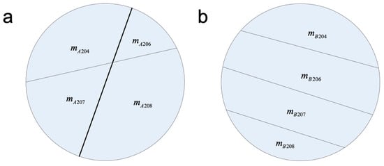 Then the lead quality composition structures of the two pollution sources A and B are discussed. They are shown in Figure 2a,b.