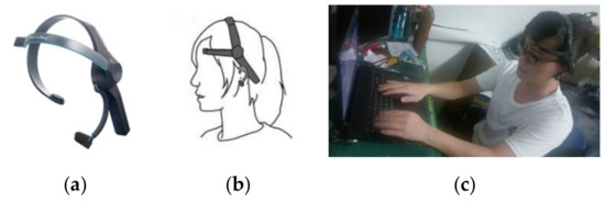 Pictures (a) and (b) were provided by Sheng Hong Precision Technology Co. (c) an example of brain wave collection.
