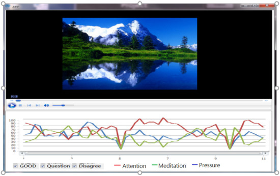 In past studies, the definition of meditation in EEG detections has been widely accepted as a way to manage stress, where higher meditation data indicate lower stress [11,12]. Therefore, in this study, the definition of “higher pressure” refers to the EEG data of “lower meditation.” Besides, attention means that the participant is focused on one thing and his/her EEG data from the EEG detectors show higher active performance [13]. In this study, the higher power value data of the “attention” item indicated that the participant paid higher attention.
