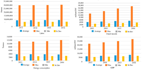 Labor, fixed assets, energy consumptions from 2013–2016.