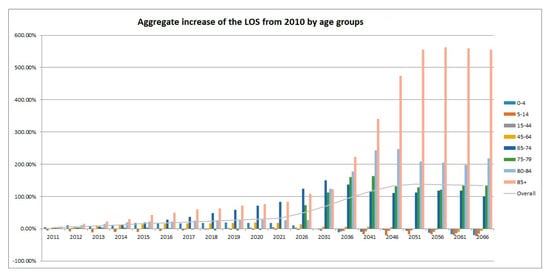 Aggregate increase in the LOS from 2010: 2011–2066.