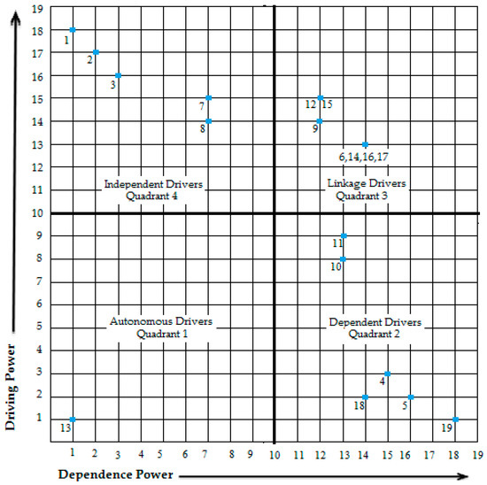 - 9: Perform the MICMAC analysis according to the driving and dependence power of each driver.
