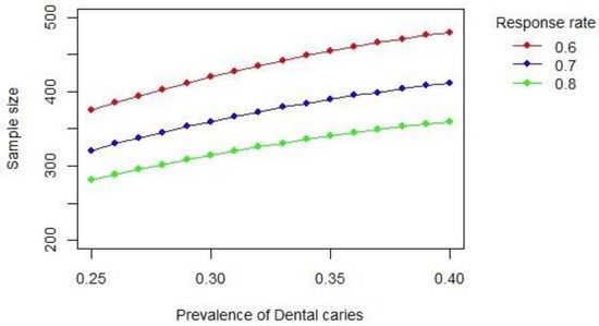 Studies using RDS require a complex sampling design. Our sample size calculation was based on RQ3 and follows Cornfield’s recommendation to account for this design effect []. Figure 2 shows different scenarios for the sample size calculation.