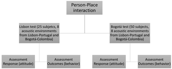 The work focuses on the analysis of the influence of the Person-Place Interaction with input variables such as responses and outcomes. For this purpose, a test was applied where listeners evaluated unknown sites and places with which they had interacted. Figure 2 describes the general design of the subjective tests.