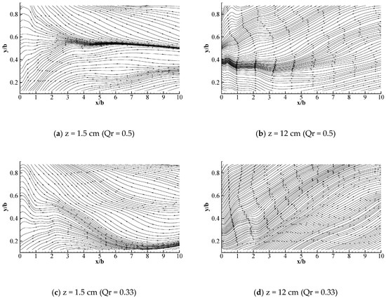 In addition, there are differences in the hydrodynamic characteristics of the different types of confluences. For example, several studies have investigated asymmetrical junctions, and factors such as confluence ratio and confluence angle are proposed. In particular, Best [4] proposed a model of the flow dynamics present at the river channel confluences based on six characteristic flow zones which include: regions with flow stagnation, flow deflection, flow separation, maximum velocity, downstream flow recovery, and several distinct shear layers. Moreover, Best and Reid [5] conducted four flume experiments with different confluence angles to determine the features of the flow separation zone. The dimension was found to increase with both the junction angle and the contribution of the branch to the total discharge, but the shape remained more or less constant. In addition, a study by Qing et al. [6] indicated that the discharge ratio affects the geometry and separation zone trend from the riverbed up to the surface. Furthermore, Best [7] conducted an in-depth investigation of complex flow and sediment transport patterns, showing that the major controls for these processes are the junction angles and the ratio of the discharge in the two confluence channels.