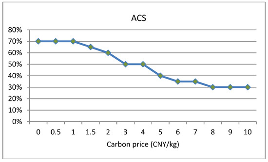 - In the meantime, we can see that the overall average customer satisfaction is on a downward trend with the increase in carbon price within the effective carbon price interval, and changes in average customer satisfaction follow changes in carbon emissions. Hence, increases in carbon price not only reduce carbon emissions, but also reduce customer satisfaction to a certain extent. In addition, from the trend relationship between carbon emissions and average customer satisfaction, it can be seen that there is a certain trade-off between the two. Hence, the inference in Section 5.3 is confirmed. This is also consistent with the conclusion presented in reference [31]. As the results show, the government must properly control the carbon price. Low prices cannot achieve the effect of reducing emissions, and high prices will reduce customer satisfaction to a certain extent, thereby reducing the competitiveness of enterprises.