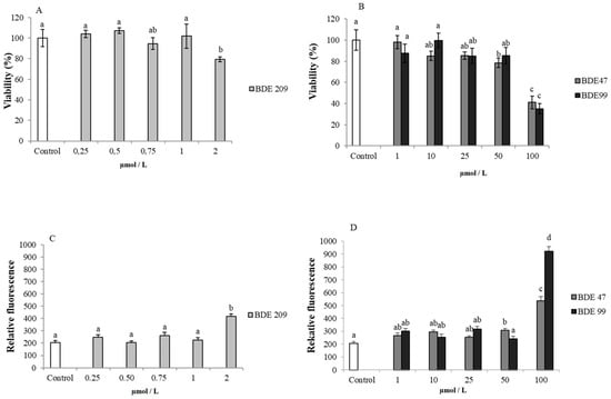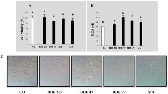 3.1. Effects of PBDE on Cytotoxicity and ROS Production
