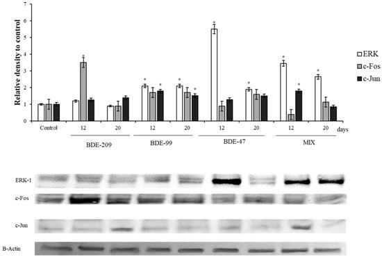 3.3. Effects of PBDEs on ERK, c-Jun and c-Fos