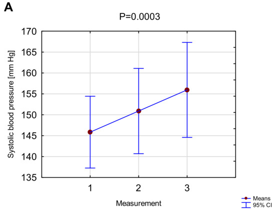 No adverse cardiovascular events were observed during hemodialysis combined with vibrations. Systolic blood pressure increased insignificantly at the second measurement in comparison to the first and third measurements compared to the second measurement (respectively vs. ; ; vs. ; ). A significant increase in systolic blood pressure was observed between the first and the third measurement ( vs. ; ). The three consecutive readings of diastolic blood pressure (; ; ) and heart rate (63 bpm; 65 bpm; 65 bpm) did not show clinically-important or statistically-significant differences. No significant blood pressure or pulse changes were observed in the control group during two consecutive dialyses.