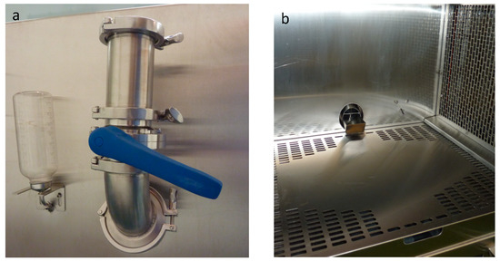 Airtight feeders and water bottles are connected to the chambers. Butterfly valves in the feeders are used for adding food without disrupting the airflow inside the chamber (Figure 4a). Bars installed inside the feeders prevent the animal from reaching the butterfly valve (Figure 4b).