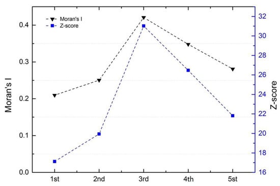 Figure 4. Moran’s I index and Z-score values in I-V epidemic areas.
