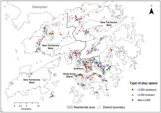 Play space in HK is provided by three major organizations, namely Leisure and Cultural Services Department (LCSD), Housing Authority (HA), and Housing Society (HS). Play and recreation facilities for children in public space is primarily provided and managed by the LCSD. The LCSD managed play space accounts for about 70% of the public play space provision. The other 30% is provided in non-LSCD venues, such as in public rental and subsidized ownership housing estates managed by HA and HS. A first step towards estimating potential users of play space is to examine the spatial distribution of children based on census and related statistics. The study examined quantity and quality of play space from the spatial perspective to inform planning directions. It focused exclusively on identifying both indoor and outdoor public play areas (operated by the LCSD, HA, and HS) that provide open access to children and where parental or adult supervision is necessary in their use. It would not consider play areas operated by private companies or private housing estates and schools. Despite the deficiency in play space accounting, this compiled data set will form the basis for further spatial analysis of sufficiency of play space at the district level by considering children population and their geographic distribution.