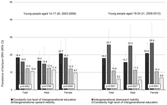 - Does the association between SRH and intergenerational educational pathways among young adulthood change if SRH is considered during adolescence?