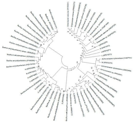 - Dominique, C.; Philippot, L.; Hartmann, A.; Catherine, H.; Jean-laude, G. 16s rdna analysis for characterization of denitrifying bacteria isolated from three agricultural soils. FEMS Microbiol. Ecol. 2001, 34, 121–128. [Google Scholar]