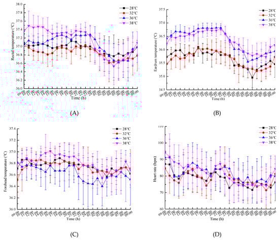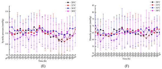 23]. However, their effects on the physiological parameters can be ignored as: (1) During night time, subjects adequately had a short sleep between two adjacent measurements (each measurement only took about five minutes); (2) the minimum interval between each temperature condition was four days, and the short-term sleep insufficiency had little effect on physiological circadian rhythms; (3) many studies on circadian rhythms involved nighttime measurements [