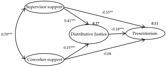 Supervisor Support, Coworker Support and Presenteeism among Healthcare Workers in China: The Mediating Role of Distributive Justice