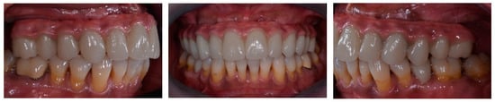 Static, dynamic occlusion and centric contacts on all crown surfaces were carefully verified and modified where needed through the use of an articulating paper (40 μm Bausch Articulating Paper, Nashua, NH, USA). Following the immediate provisional prosthetic protocol [], centric and lateral contacts were limited to the intercanine area and also passive fitting was checked.