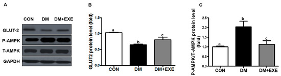 3.3. Resistance Exercise Increased GLUT-2 and Attenuated Increases in AMPK in the Hypothalamus