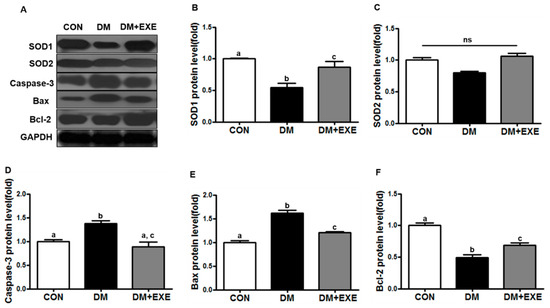 3.4. Resistance Exercise Improved Antioxidant Enzyme and Apoptotic Protein Levels