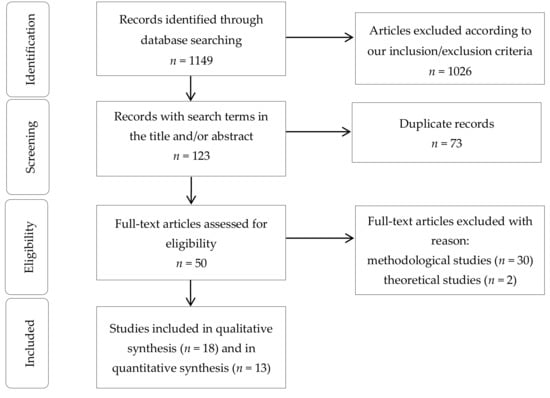 We discarded 32 papers: 2 were theoretical investigations and 30 were methodological studies. 18 articles were included in the systematic review [33,34,35,36,37,38,39,40,41,42,43,44,45,46,47,48,49,50]. Furthermore, from the quantitative synthesis (i.e., the meta-analysis) several studies (n = 6) [36,40,48] were based on the same sample obtained from the “Buffalo Cardio-Metabolic Occupational Police Stress” (BCOPS) cohort trial and, as such, we included only the publication of Charles et al. (2011), having the largest sample size [36].