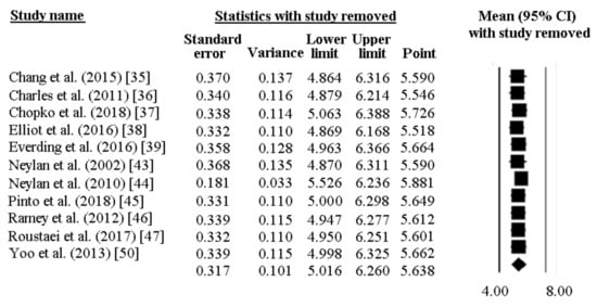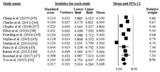 - Borenstein, M.; Hedges, L.V.; Higgins, J.P.T.; Rothstein, H.R. Introduction to Meta-Analysis; Wiley: Chichester, UK, 2011. [Google Scholar]