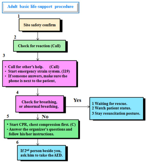- Ministry of Education, K12 Education Administration. Basic Life Support Education. Available online: https://www.k12ea.gov.tw/ap/affair_view.aspx?sn=66a60c9f-c382-48ae-a0d4-aa0f09adbd6b&sid=19 (accessed on 2 February 2019).