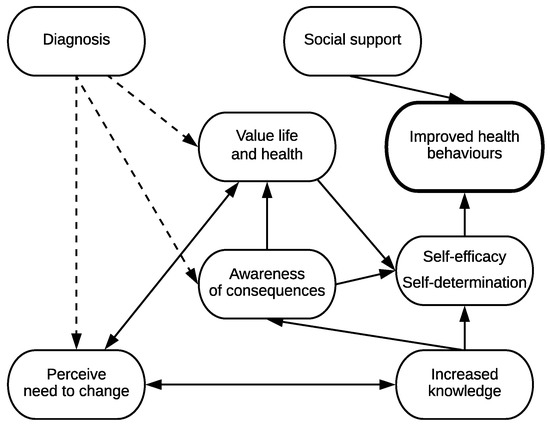 The apparent relationships between key factors influencing improved health behaviours in these participants is represented in Figure 1.