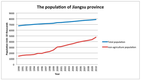 - National Bureau of Statistics of the People’s Republic of China. Jiangsu Statistical Yearbook 2016. Available online: http://www.jssb.gov.cn/2016nj/nj03.htm (accessed on 14 June 2018).