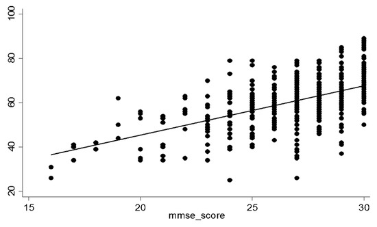 Scatter plot depicting correlations between the standardized MMSE-J and the Qmci-J screen.