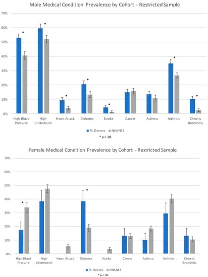 3.5. Direct Comparison of Prevalence of Chronic Conditions in Men and Women within the Ft. Devens Cohort