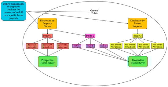 In light of these questions about which disclosure practices most effectively motivate action by the property owner or buyer/renter to replace an LSL, we sought to develop evidence-based recommendations for LSL disclosure policies in key scenarios, by evaluating responses among potential home buyers and home renters to being told that a home has an LSL by the property owner or a home inspector. We tested the effects of different disclosure language styles and content, for each of three scenarios (Figure 1) on a variety of outcomes that included the willingness to adopt risk mitigation behaviors, risk perceptions, self-efficacy (the perception that the individual has the ability and resources to avert a threat), response efficacy (the perception that various actions will be successful in reducing the threat), perceived affordability, and seeking additional information about LSLs. The disclosure styles that we tested were based on language and formatting that was actually in use, or that were being considered for use. In the case of the home inspector disclosure, we modeled the disclosure on typical inspector reports.