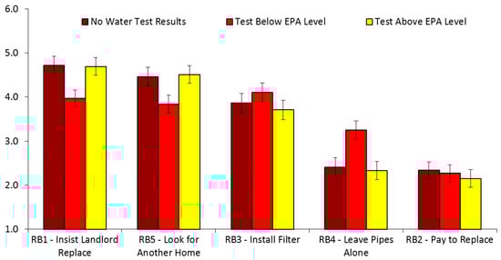 Turning to the effects of various methods of disclosure, among potential home renters, we found that a landlord giving a potential renter water test results showing the lead level was below EPA’s lead action level appeared to give more people license to do less to replace the LSLs, as well as a false sense of security (as indicated by weaker risk perceptions), in contrast to results showing that the lead level was above the EPA’s action level, or providing no water test results at all. This finding is consistent with a previous study showing that providing basic risk information plus additional alarming information led to higher risk perceptions than basic risk information plus reassuring information [20]. These results suggest that there is a critical need to educate consumers about (a) the challenges and uncertainties involved in water test results, (b) their potential for a disproportionate influence in renter decision making, and (c) the fact that there is no safe level of lead exposure.