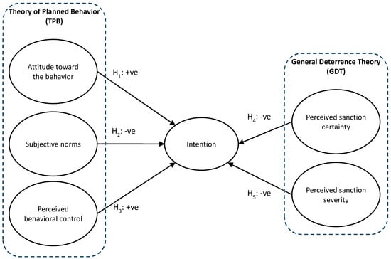 The GDT suggests that punishment discourages individuals from conducting deviant behaviors [,]. Gibbs [] provided empirical evidence demonstrating that the certainty and severity of legal sanctions reduce the incidence of crime. The certainty of sanctions is the probability that one will be punished after committing the deviant behavior, whereas severity of sanctions is the intensity of the punishment. Geerken and Gove [] explicitly emphasized that the perceived certainty and severity of sanctions are more important than the actual certainty and severity. The GDT has been applied to explain the effect of punishment on various deviant or criminal behaviors, such as illegal disposal of construction and electrical waste [], personal use of the Internet at work [], and drinking and driving []. In determining the intention of illegal waste disposal, the GDT may provide implications for policy modification, such as to increase fines and reinforce monitoring.
