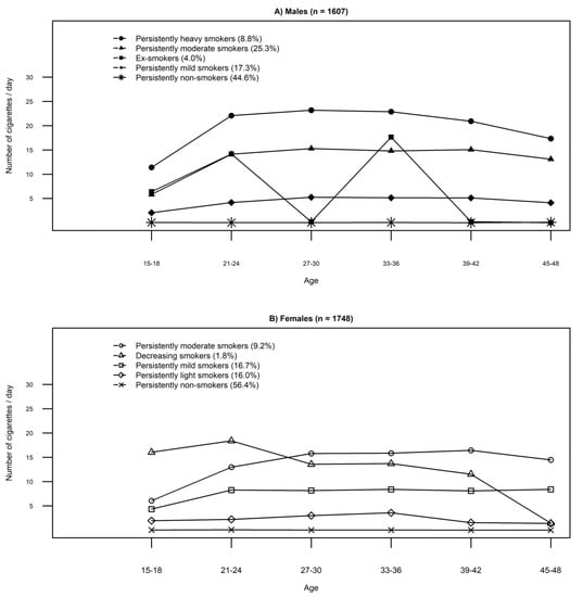 - Akhtar-Khaleel, W.Z.; Cook, R.L.; Shoptow, S.; Surkan, P.J.; Teplin, L.A.; Stall, R.; Beyth, R.J.; Manini, T.M.; Plankey, M. Long-term cigarette smoking trajectories among HIV-seropositive and seronegative MSM in the multicenter AIDS cohort study. AIDS Behav. 2016, 20, 1–9. [Google Scholar] [CrossRef]
