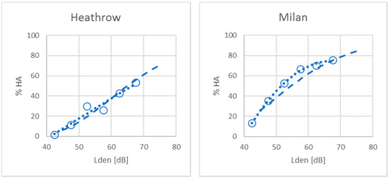 Likewise, there is reason to question the adequacy of the exposure estimates at several of the HYENA airports. Babisch et al. cite aircraft noise levels as low as LAeq 24h = 11 dB (Stockholm) and LAeq 24h = 22 dB (Milan). Such aircraft noise levels are only marginally credible as modeling estimates, much less as acoustic measurements. Guski et al. [4] convert these estimates to Lden by applying a correction factor of 2.6414 dB [13]. These values seem to indicate that the researchers rely heavily on existing models to describe the aircraft noise exposure, with little evident concern for the limitations of aircraft noise modeling software, and for the credibility of predicted exposure values. No existing aircraft noise prediction programs can yield credible exposure predictions at such low levels (indicating a very long distance from the source). Applying a correction accurate to “one ten-thousandth of a decibel”, to a number that has been predicted by a model that yields output values with a standard error of at least 1–2 dB [14], makes no sense at all.