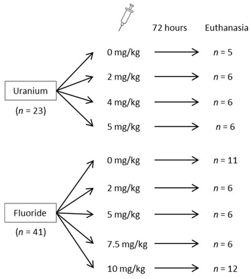 2.2. Intraperitoneal Injection of Animals with U or F and Urine Collection