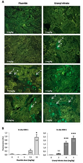 - Cardenas-Gonzalez, M.C.; Del Razo, L.M.; Barrera-Chimal, J.; Jacobo-Estrada, T.; Lopez-Bayghen, E.; Bobadilla, N.A.; Barbier, O. Proximal renal tubular injury in rats sub-chronically exposed to low fluoride concentrations. Toxicol. Appl. Pharmacol. 2013, 272, 888–894. [Google Scholar] [CrossRef]