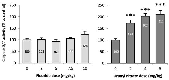 - Linares, V.; Belles, M.; Albina, M.L.; Sirvent, J.J.; Sanchez, D.J.; Domingo, J.L. Assessment of the pro-oxidant activity of uranium in kidney and testis of rats. Toxicol. Lett. 2006, 167, 152–161. [Google Scholar] [CrossRef] [PubMed]