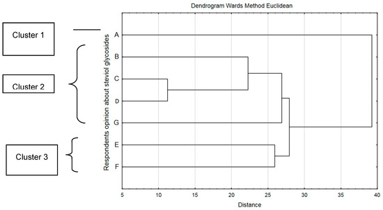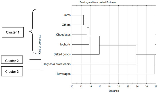 The ANOVA test and multi-dimensional cluster analysis was used. Significance of differences between the values was determined at a significance level of p < 0.05. The ANOVA test was used to evaluation the effect of sociodemographic factors on habits in the consumption of sugar and sweeteners, as well as products containing them. Multi-dimensional cluster analysis was used to segmentation consumers according to criteria for the selection of sweetened preserves, consumption of products sweetened by stevia and respondents’ opinion about stevia. Ward’s method (distance Euclidean) was used in cluster analysis.