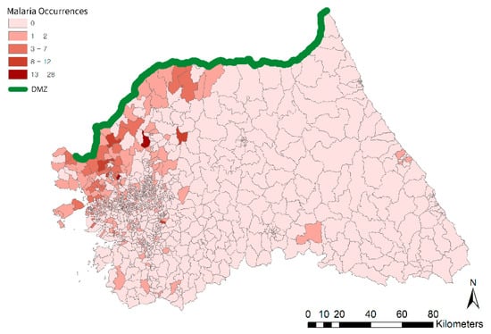 - Lee, J.S.; Lee, W.J.; Cho, S.H.; Ree, H.-I. Outbreak of vivax malaria in areas adjacent to the demilitarized zone, South Korea, 1998. Am. J. Trop. Med. Hyg. 2002, 66, 13–17. [Google Scholar] [CrossRef]