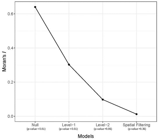3.3. Results Interpretation—Spatially Filtered Multilevel Model