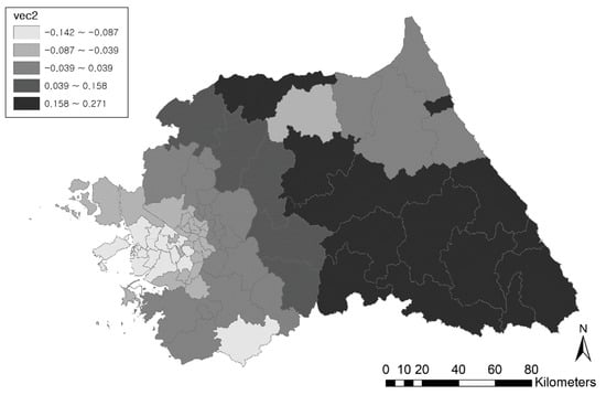 - Park, Y.; Kim, Y. A spatially filtered multilevel model to account for spatial dependency: Application to self-rated health status in South Korea. Int. J. Health Geogr. 2014, 13, 6. [Google Scholar] [CrossRef]