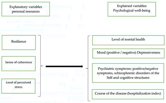 According to literature, it is assumed that various predictors may be significant for a positive course of schizophrenia, up to a patient’s recovery [1,2,3]. Psychosocial resources and deficits or defects of biological and psychosocial structures are important factors that determine the status of psychological well-being as well as course of the disease and the process of recovering from schizophrenia [1,2]. However, no Polish studies strived to verify simultaneously the predictive role of a set of three interrelated personal resources directed at protecting ego strength, that is: Resilience, sense of coherence, and perceiving stress as a threat versus challenge within a group of patients with schizophrenia similar in terms of sociodemographic variables.