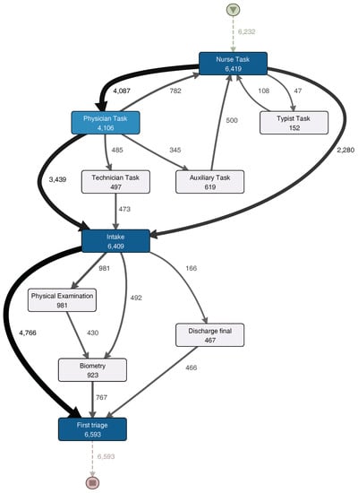 28]. Several activities were selected by the ER specialist from the event log to see the process model followed in the analyzed episodes.