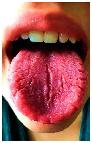 - Sudarshan, R.; Sree Vijayabala, G.; Samata, Y.; Ravikiran, A. Newer Classification System for Fissured Tongue: An Epidemiological Approach. J. Trop. Med. 2015, 2015, 262079. [Google Scholar] [CrossRef]