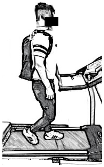 A treadmill which allows adjustment of inclination was used. In addition, an isometric strength measurement unit was adopted. This unit contains a platform, a chain with a handle, and a loadcell. It allows measurements of isometric back strength and isometric leg strength. This unit had been adopted in previous studies [21,22]. A Borg rating of perceived exertion (RPE) scale (6–20) was prepared to measure the perceived physical exertion of the body after a backpacking trial [40,41]. A backpack allowing to be carried with both shoulders was also prepared. The sizes of the backpack were 41 cm × 33 cm × 14 cm. The width and thickness of the shoulder straps were 7.5 cm and 0.5 cm, respectively.