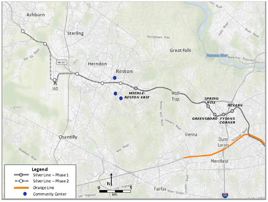 Participants were adolescents who lived within a two-mile buffer of the five new Silver Line-1 Metro stations. Partnership with Reston Community Center facilitated study participant recruitment. Reston Community Center permitted usage of their space and recruitment of their members, as well as, members of the Reston Teen Center and Southgate Community Center, which included any and all Reston residents. All three recruitment sites were located in Fairfax County and within a two-mile buffer of the Wiehle-Reston East Silver Line-1 Metro station, the station located within Reston (Figure 4).