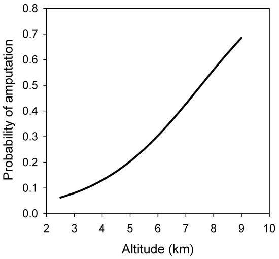 Relationship between probability of amputation after frostbite and altitude.