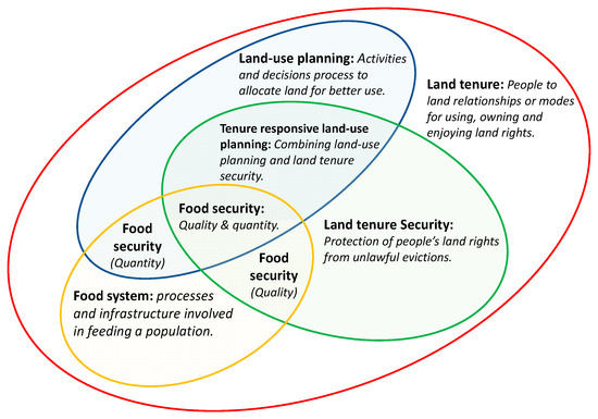 2.1. Framing Tenure Responsive Land-Use Planning in Response to Food Security: Delineation of Intertwined Concepts, Definitions and Relationships