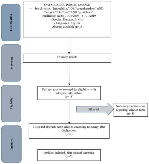 The keywords used in the search of the selected electronic databases included the following: “haemophiliac” OR “coagulopathies” AND “surgical” OR “oral” AND “guidelines”.